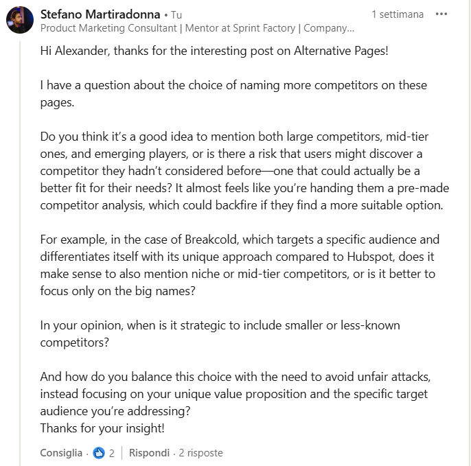 Nell’articolo di oggi voglio affrontare un tema emerso da un post su LinkedIn, che riguarda l’importanza della SEO, con un focus specifico sulle pagine di comparazione nel contesto del SaaS B2B.